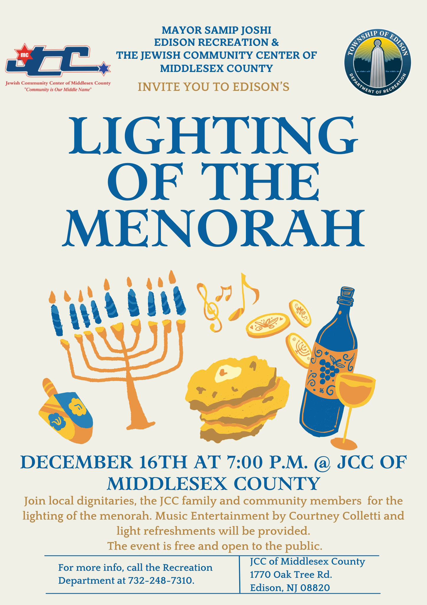 2025-December-16, Tuesday @ 07:00 PM - Lighting of the Menorah @ JCC of Middlesex County